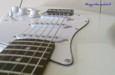 This is the Swing SS-1 headstock's flipside view, all neat & tidy. The 'Made in Indonesia' stamp & serial number clear for all to see.