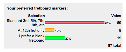 For many of us, the traditional fretboard marker placement is still our preferred navigation reference. We started with guitars bearing such a feature, we are used to these visual markings, many of our preferred brand names out there feature such references any way. It's a 'safe' reference, it works, it's the way to go.
